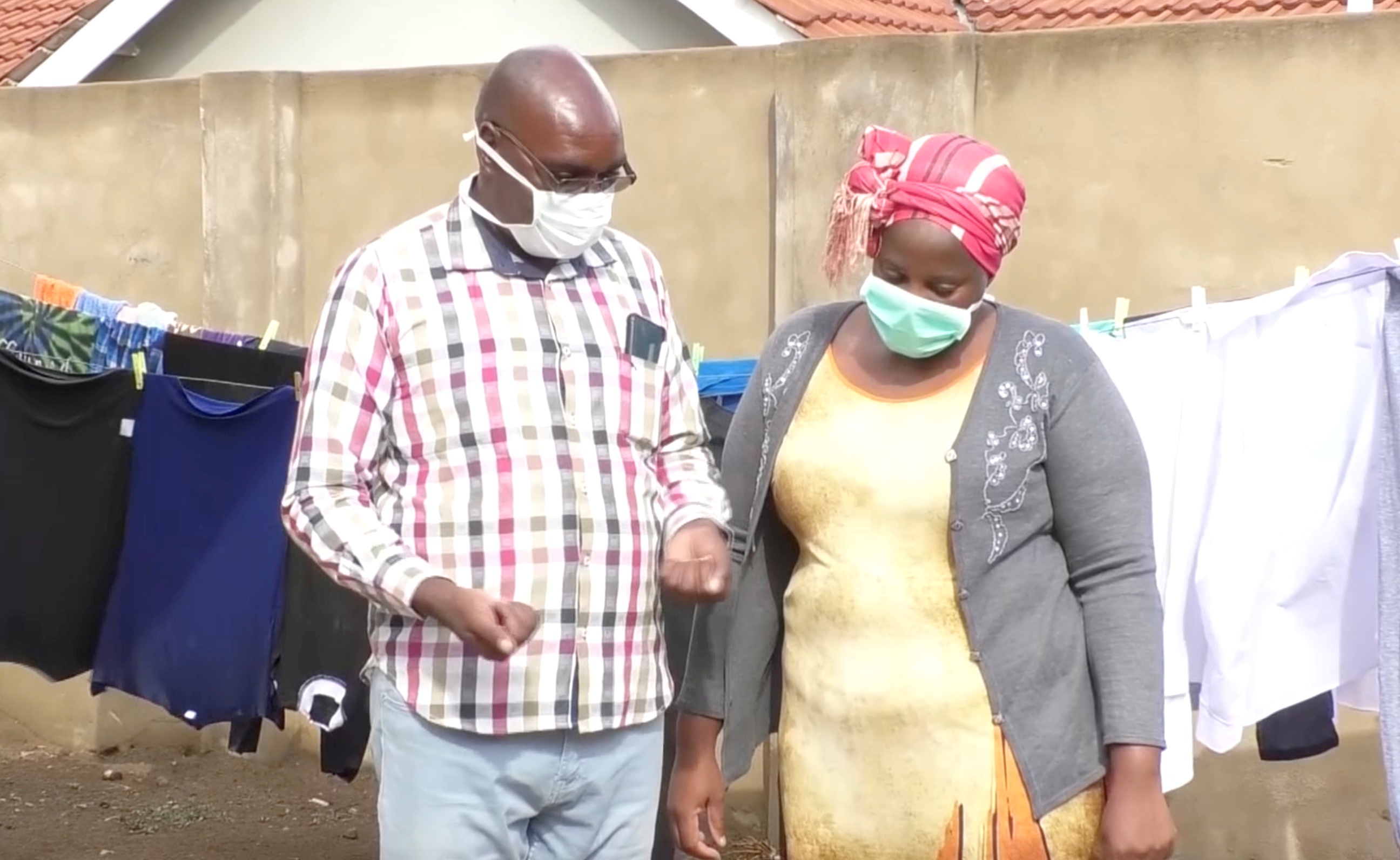 Covid-19 survivor Saul Sakudya talks with his wife Joyce during a nationwide lockdown to help curb the spread of the coronavirus in Harare.As of Friday, the country had recorded 31 cases of Covid-19 and four deaths.